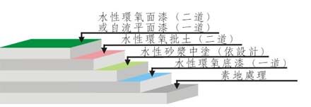 4、水性環氧批土:依實際需要施工二至三道,要求達到平整無孔洞,無批刀印及砂磨印為準